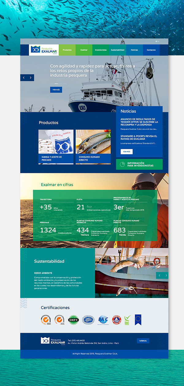 Pesquera Exalmar S.A.A. is from 1976 one of the world leaders in the production and transformation of fish meal and fish oil, with a fleet of more than 20 units and over 1,300 employees worldwide.