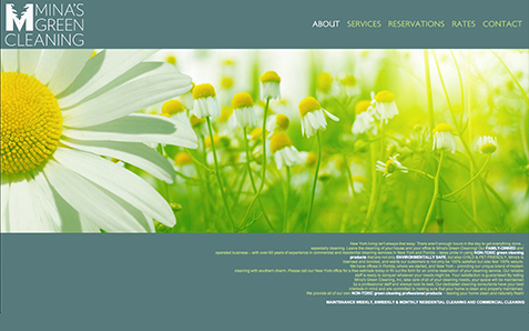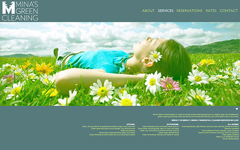 The choice of using full screen pleasant photographs throughout the site allows users to immerse themselves in the mood of Mina's Green Cleaning, appreciating the values of sustainability and respect for the environment.