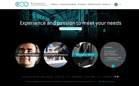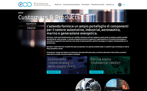La Pintotecno è un'azienda specializzata nelle lavorazioni meccaniche di precisione, eccellenza italiana per livello tecnologico e alti standard di qualità. Opera con successo da più di trent'anni nel settore automotive, industrial, aeronautico, marino e generazione energetica. Nel corso dell'ultimo anno ha iniziato un percorso di total restyling che è partito dalla fabbrica, passando per i processi, e in modo radicale ha interessato la comunicazione interna ed esterna.