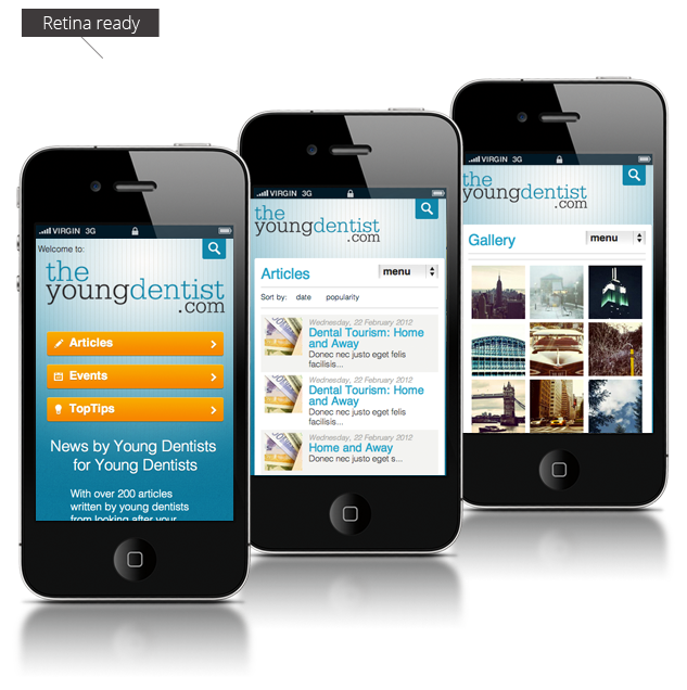 Among the guidelines of the brand strategy of 2012, Dental Protection, a leading Anglos-Saxon health insurance company specializing in dental care, awarded our web agency the role of creating a new mobile site. The goal was to reach the largest number of targeted customers and spread brand awareness for the online project. The Young Dentist is an innovative portal for communication method which lies in the basin of the hub, halfway between the educational and jobs-marketplaces in the dental healthcare sector.